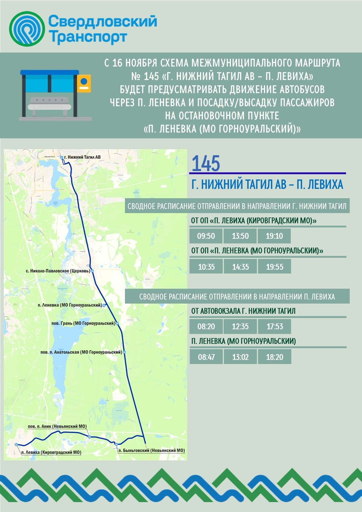 Изменение межмуниципального маршрута № 145 «г. Нижний Тагил АВ - п. Левиха»